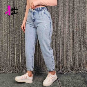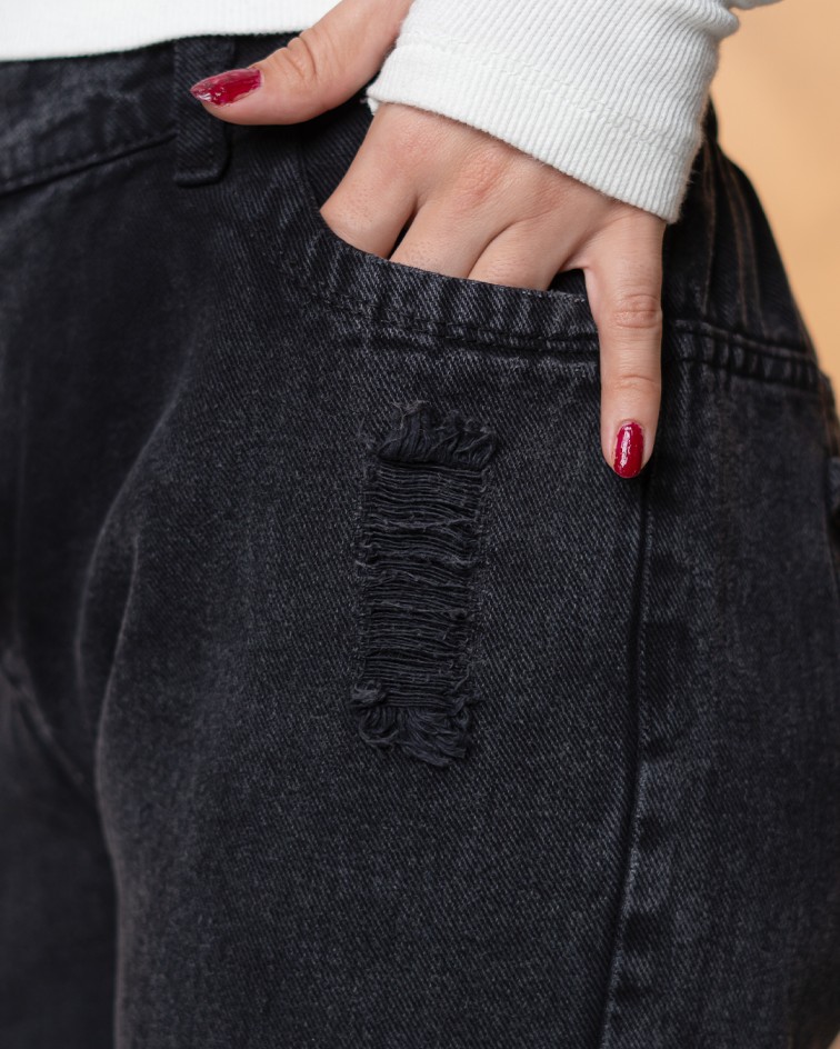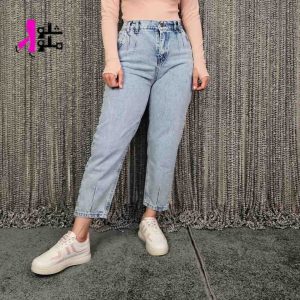 شلوار جین مام فیت رنگ ذغالی کمر کش | 5472