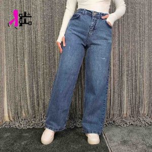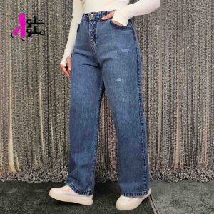 شلوار جین نیم بگ رنگ آبی وسط | کد 5478
