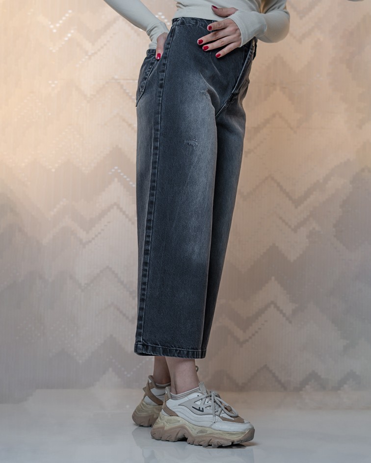 شلوار جین واید لگ دخترانه سنگشور ذغالی | 5470