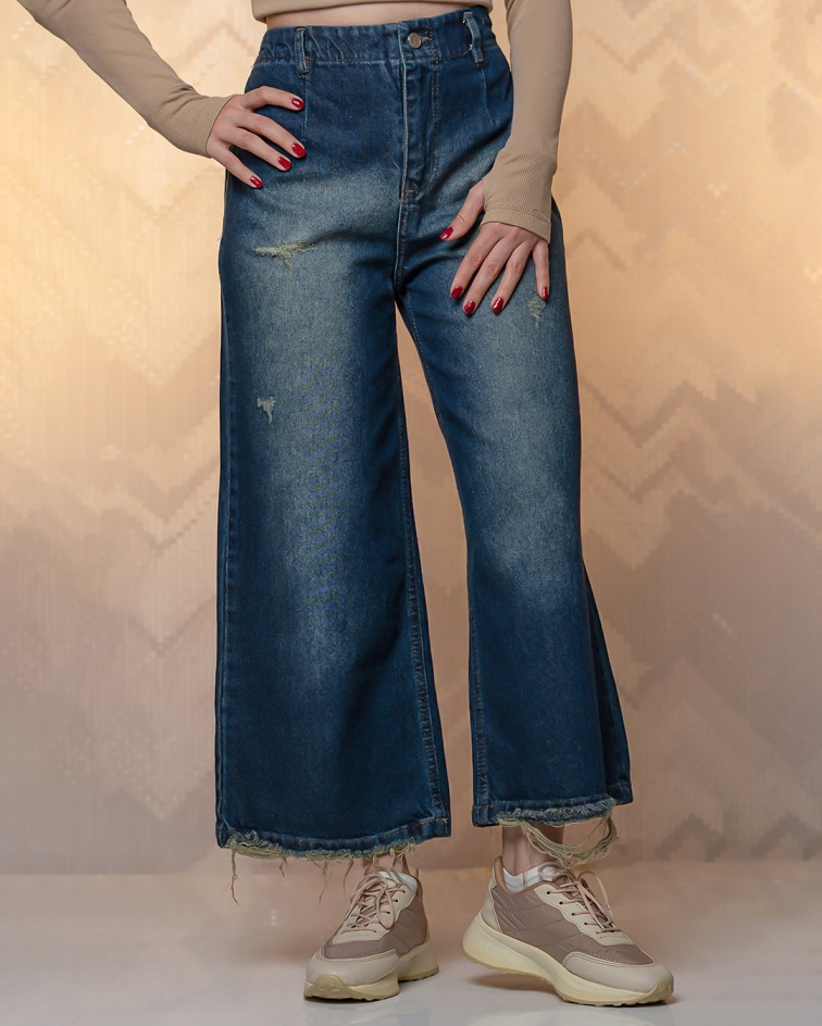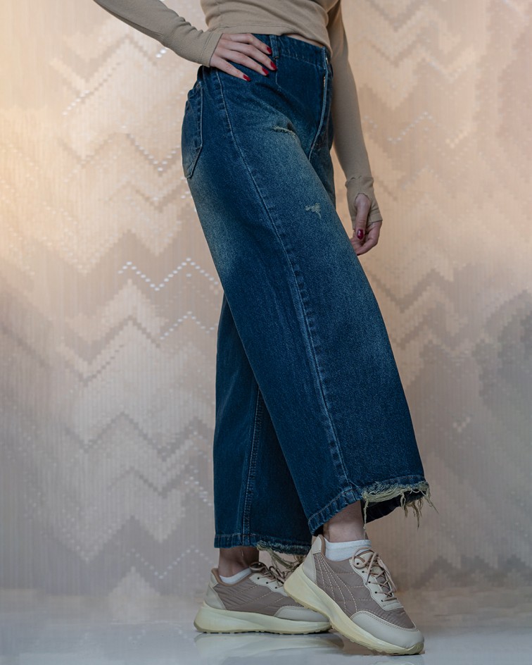 شلوار جین واید لگ سنگشور سورمه ای | کد 5467